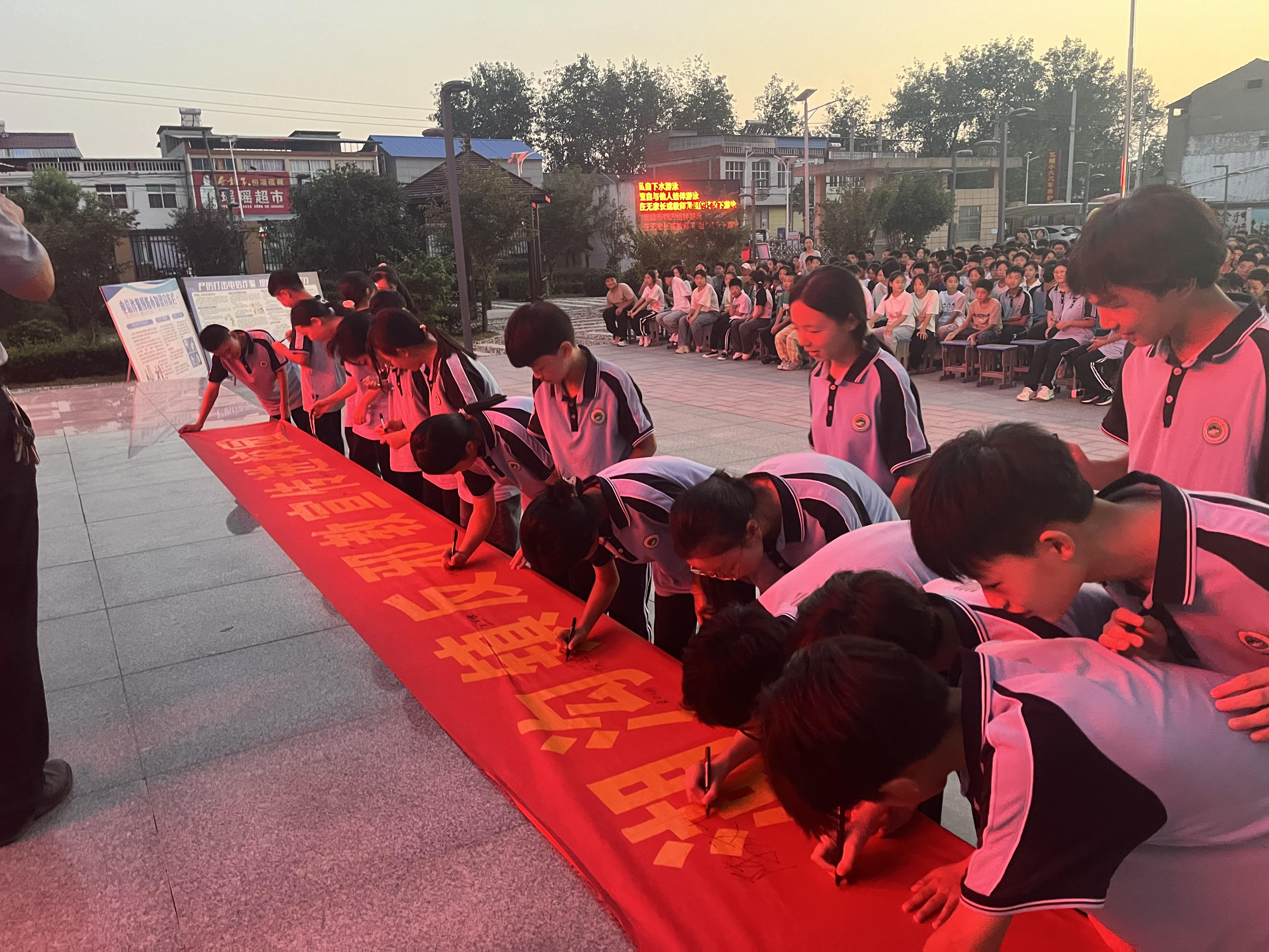 该活动按照“法律知识讲座、师生反邪教签名、观看法律知识展板、学生谈心得”四个板块依次进行。首先,由镇派出所干警以“贴近实际、贴近学校、贴近学校”的语言,向师生们详细地讲解防电诈、防欺凌、防邪教、防性侵等相关知识及典型案例,向他们传授运用法律武器维护自身权益的方法,告诉他们遇到非法侵害时的自救方法,为全体师生上了一堂生动的法律法规知识宣传教育课。