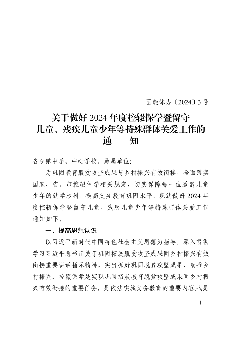 关于做好2024年度控辍保学暨留守儿童、残疾儿童少年等特殊群体关爱工作的通知