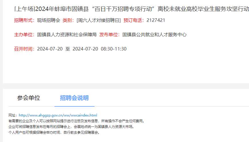 【面向高校毕业生】2024年蚌埠市固镇县“百日千万招聘专项行动”离校未就业高校毕业生服务攻坚行动