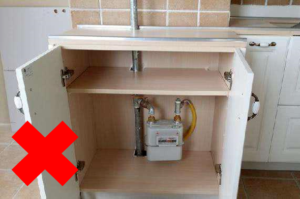 如果将燃气表密封在橱柜,不仅会给燃气企业安全检查、检修时带来不便,而且很有可能危及您的人身安全。