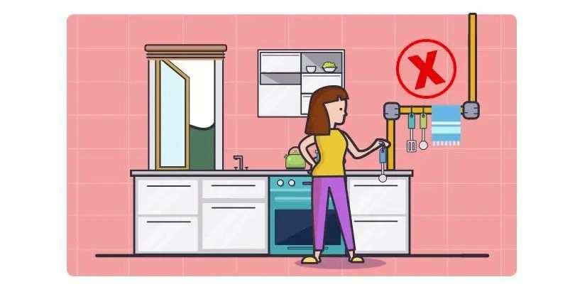 灶具周围及燃气管道上方严禁悬挂各类杂物,降低因管道变形引发火灾风险,确保用气安全。