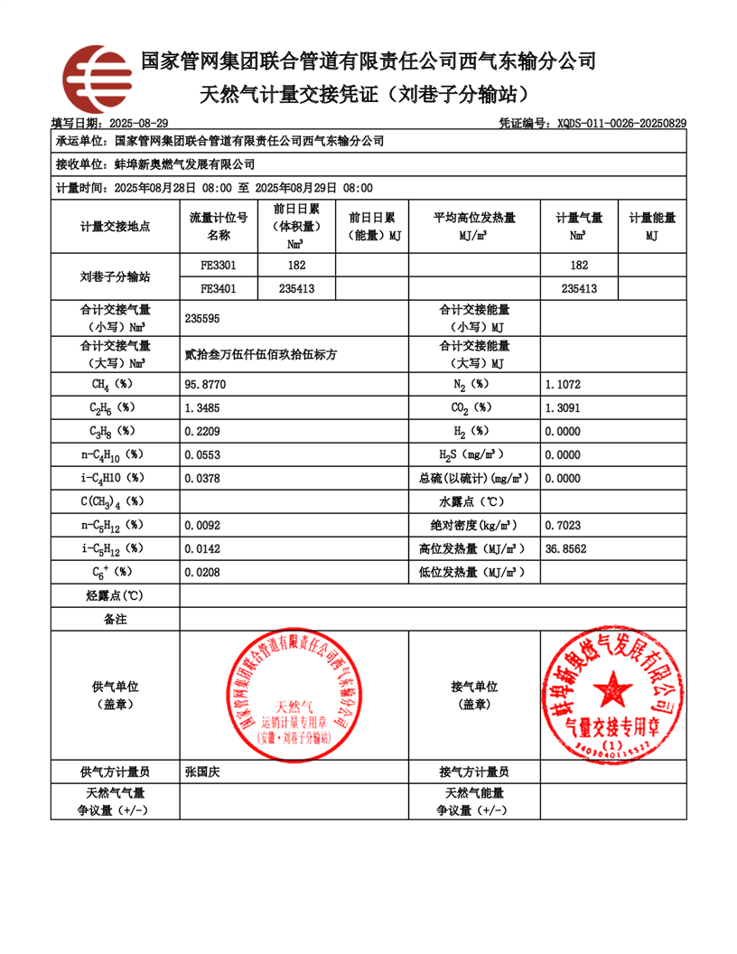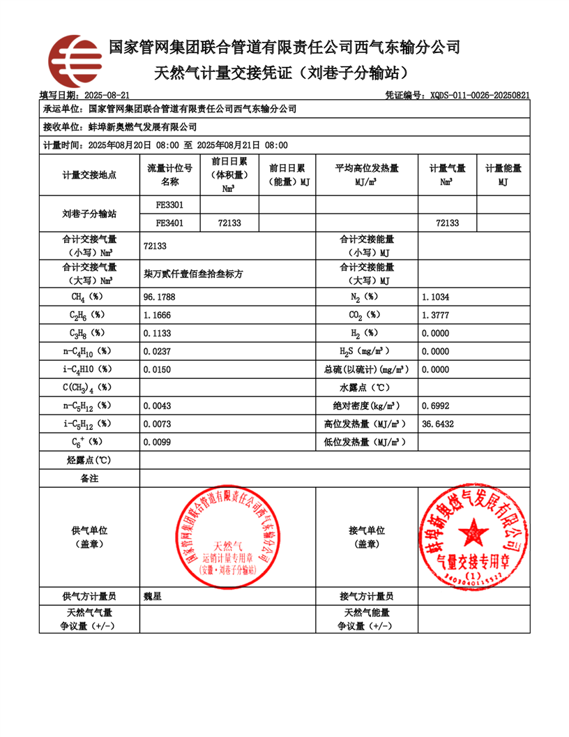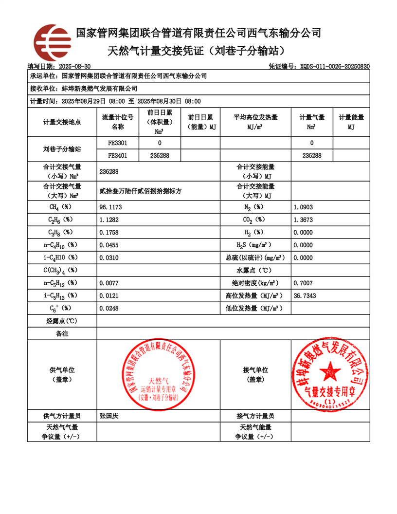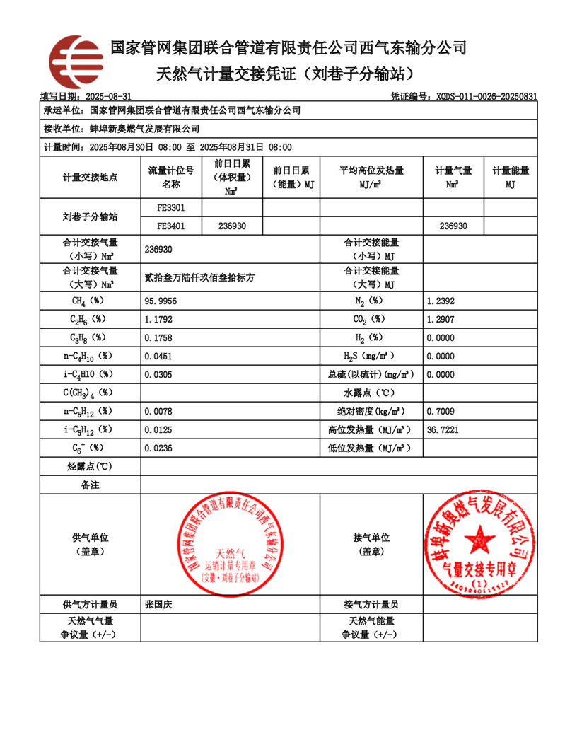 安徽皖能新奥气质分析报告(2025年8月16日-8月31日)