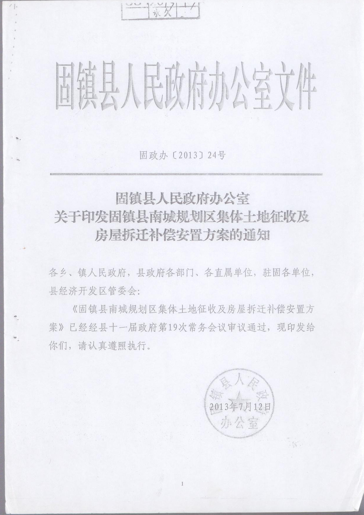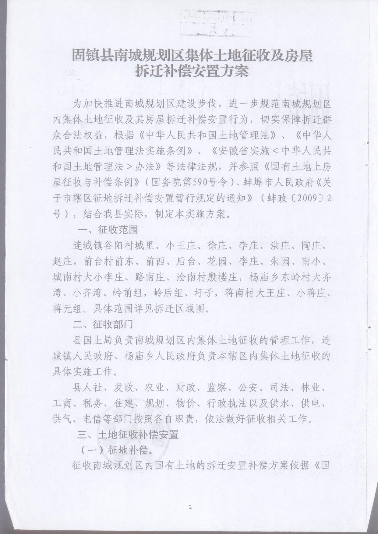 固镇县人民政府办公室关于印发固镇县南城区规划区集体土地征收及房屋拆迁补偿安置方案的通知